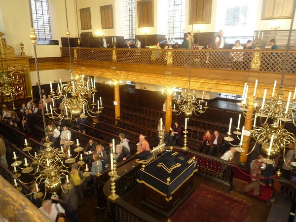 Двенадцать колонн, поддерживающих женскую галерею, символизируют двенадцать колен Израиля. В зале сохранились оригинальные деревянные скамьи эпохи Кромвеля, а ряд мест зарезервирован для почетных гостей. Одно из них —  ближайшее к арон а-кодешу — было закреплено за попечителем синагоги Мозесом Монтефиоре, в течение 39 лет возглавлявшим Совет депутатов британских евреев. На этом месте в 2001 году сидел принц Чарльз во время празднования 300-летия синагоги, а в 2006-м его занял премьер-министр Тони Блэр, присутствовавший на службе, посвященной 350-й годовщине отмены Эдикта об изгнании евреев из Великобритании.