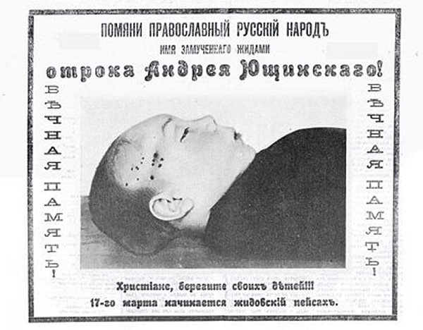 Впрочем, обо все по порядку. 21 марта 1911 года ежедневная газета «Киевлянин» сообщила, что «…по Кирилловской улице …случайно нашли в небольшой пещере труп мальчика… около которого лежал кожаный ученический пояс, несколько тетрадок, фуражка и куртка. Труп в одном нижнем белье, в неестественном полусогнутом полусидящем положении, был прислонен к стенке пещеры». Убитый, на теле которого обнаружили колотые раны, оказался учеником Киевского духовного училища 12-летним Андрюшей Ющинским. Едва началось следствие, еще до проведения судебно-медицинской экспертизы, на имя прокурора, начальника сыскного отделения, полицмейстера и т.д. стали приходить анонимки, обвиняющие в убийстве евреев, якобы замешивающих мацу на крови христианских детей (Песах в тот год приходился на 1 апреля).