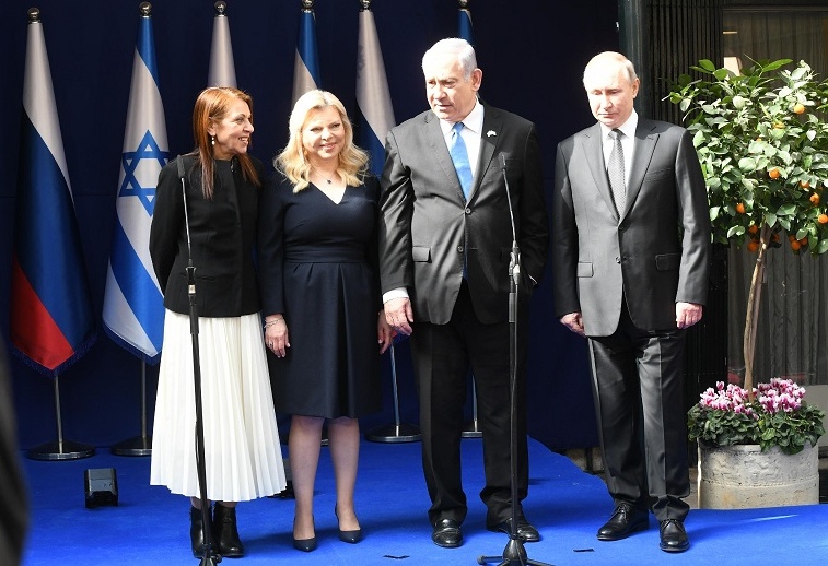 Владимир Путин, Биньямин Нетаниягу с супругой Сарой и мать Наамы Иссахар Яффа в Иерусалиме. Фото: GPO