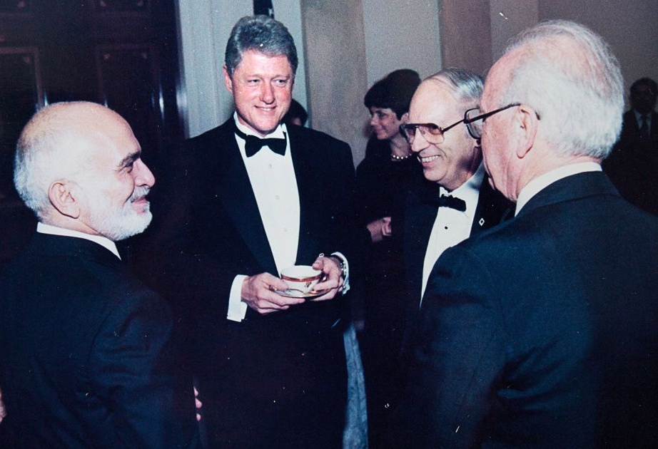 Эфраим Галеви (второй справа) с премьер-министром Рабиным, президентом Клинтоном и королем Иордании Хуссейном, Амман, 1994