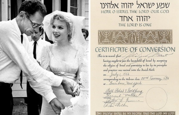 | Свадьба с Артуром Миллером, 1956 | Свидетельство о прохождении гиюра Мэрилин Монро |