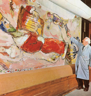 Шагал бывал в Израиле значительно чаще, чем Мишель Кикоин, причем специально для Израиля он создал несколько важных художественных проектов, выполнив серию витражей «Двенадцать колен Израилевых» для синагоги медицинского центра «Хадасса» в Иерусалиме (сам он, впрочем, был возмущен архитектурой здания, считая освещение в нем тусклым и совершенно непригодным для экспонирования его работ), спроектировав декоративные ковры и настенные мозаики для нового здания Кнессета и т.д. Отношение к художнику в Израиле было неоднозначным: вначале его очень критиковали за «галутность», за то, что он всю жизнь ментально «оставался в Витебске», когда в Эрец Исраэль социал-сионисты создавали образ «нового еврея», а ханаанейцы искали точки соприкосновения с левантийской культурой; затем критике подвергались его многочисленные витражи и мозаики, выполненные для христианских церквей и соборов в Меце, Реймсе, Цюрихе и Майнце. При этом в 1977 году Шагал получил звание почетного гражданина Иерусалима, в 1981 году — наиболее финансово значительную в Израиле и очень престижную премию фонда Вольфа в области искусств, с ним встречались все высшие руководители страны, а его ретроспективную выставку 1951 года открывал президент Хаим Вейцман.