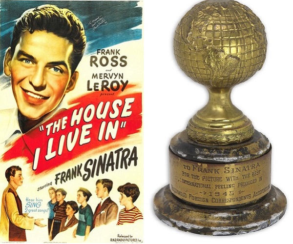 «Золотой глобус», полученный Фрэнком Синатрой за короткометражку 1945 года «Дом, в котором я живу», был продан на аукционе Nate D.Sanders Auctions за $55 000.
